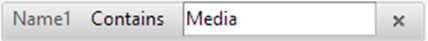 Als erstes klicken wir auf die Tabellenspalte und wählen die Spalte „Name1“ aus. Als nächstes ändern wir die Bedingung auf „Contains“ und geben zuletzt in das Eingabefeld den Text „Media“ ein. Ihre Filterzeile sollte nun wie folgt aussehen: