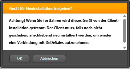 Wenn Sie den Button "Gerät für Neuinstallation freigeben" klicken, muss der Client danach deinstalliert und neu installiert werden.